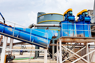 砂石骨料中常常會含有泥土和石粉,為了除去成品砂石骨料中的雜質(zhì),一般選用水洗機(jī)制砂機(jī)器進(jìn)行清洗處理,水洗機(jī)制砂機(jī)器是制砂生產(chǎn)線中較為靠后的設(shè)備配置,產(chǎn)量范圍大,可用于